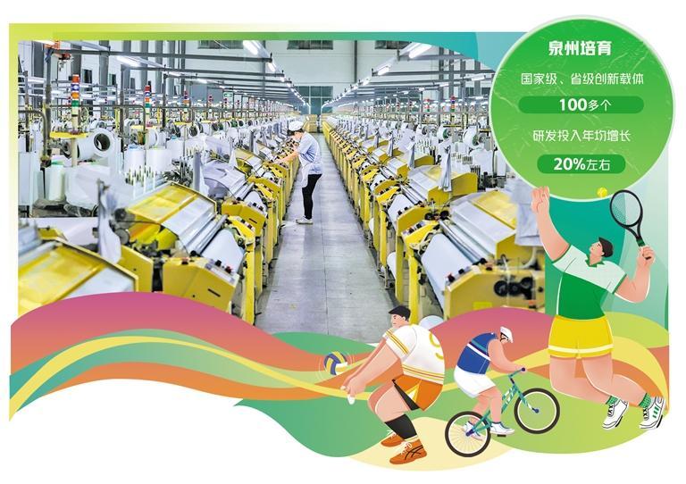 泉州企业深知,想要长远发展,必须要有自己的拳头产品,并不断推出新产品,才能抢占市场制高点。对此,政府部门也加大了政策支持力度。苏凯乐介绍,泉州市深入实施“抓创新促应用”“抓工业设计促产业提升”,培育国家级、省级创新载体100多个,研发投入年均增长20%左右。目前,泉州拥有全国最优质的纺织鞋服材料研发、工艺创新、设计创新资源,集聚了18家国家级技术创新载体,同行业所有国际标准均由集群成员单位主导或参与,PCT(专利合作条约)国际专利授权量达964个。