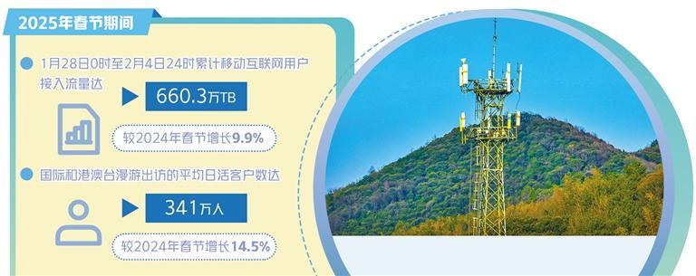 工业和信息化部日前发布的数据显示,2025年春节,通信业网络运行平稳安全,通信服务提升优化,国内移动数据流量实现较快增长,国际出入境漫游业务表现亮眼,AI赋能成为创新服务的重要方向。
