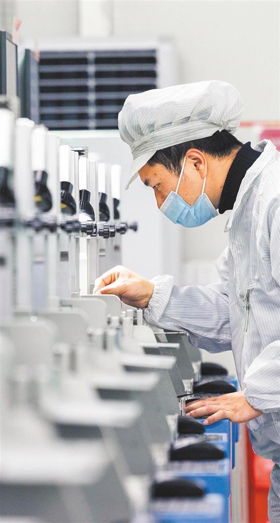 ▶2月8日,位于湖北鄂州市的湖北芯映光电无尘车间,工人在赶制LED灯珠。