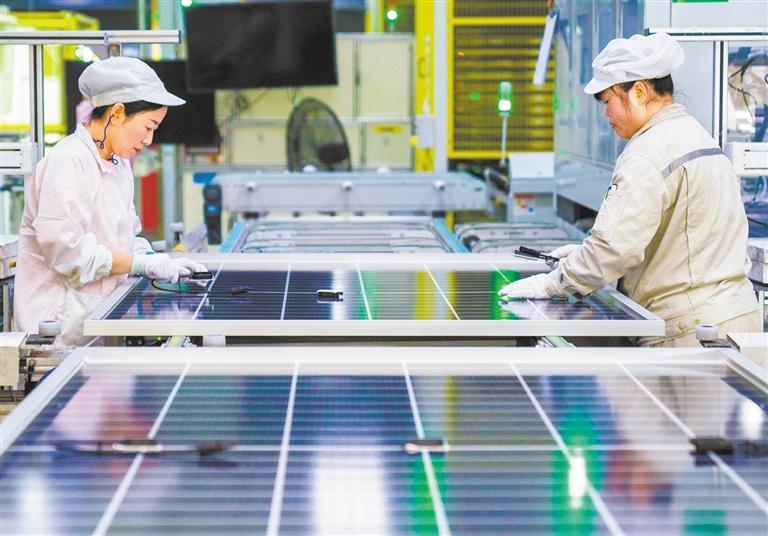 ▶2月13日,安徽合肥市一光伏组件企业,工人在车间忙碌。