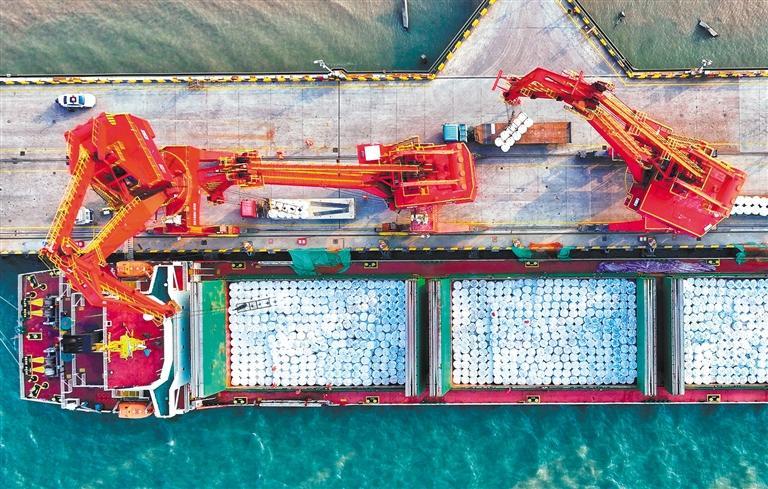 货轮在江苏张家港永恒码头卸运化肥。眼下正值春耕备耕时节,张家港口岸加大化肥运输力度,边检、海关、海事等部门开设春耕物资“绿色通道”,码头工人实行24小时轮班作业,确保化肥尽快运到周边地区田间地头,助力春耕生产。施柏荣摄(中经视觉)