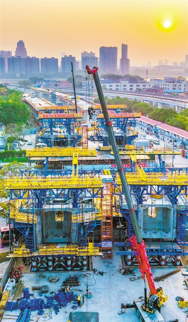 ▶2月12日,广东省广湛高铁广佛段建设现场。