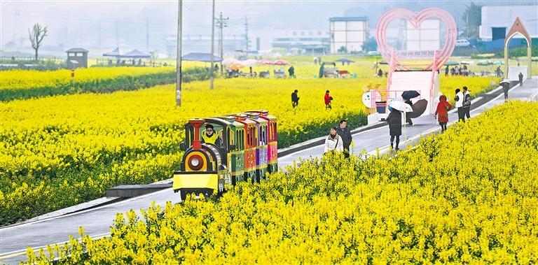 2月23日,四川省宜宾市高县庆岭镇高县粮油现代农业园区内,成片绽放的油菜花吸引不少游客前来观赏。今年,庆岭镇种植了上万亩油菜,目前已进入花期,将持续至3月中旬。兰 锋摄(中经视觉)
