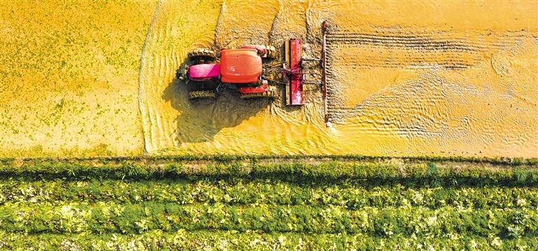 2月25日,重庆市垫江县沙坪镇李白村高标准农田,村民开着农机在打田,为育秧做准备。近年来,垫江县大力建设高标准农田,在沙坪镇李白村打造一批集中连片、设施完善、水利设施配套完整的高标准农田,积极推广机械化耕种,不断提升粮食生产能力。
