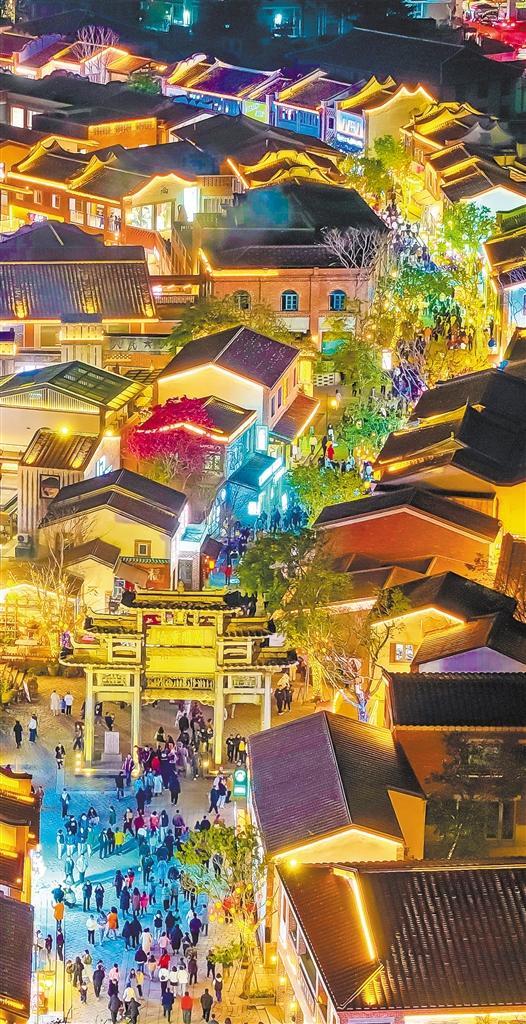 ▶2月5日,福建省福清市利桥古街灯光璀璨,游人如织。