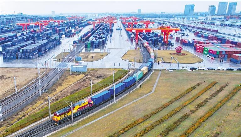 3月3日,一列满载汽车配件、化妆品等货物的X8151次中欧班列从西安国际港站驶出,开往德国杜伊斯堡。今年以来,中欧班列(西安)开行量已突破600列。 刘一江摄 (中经视觉)