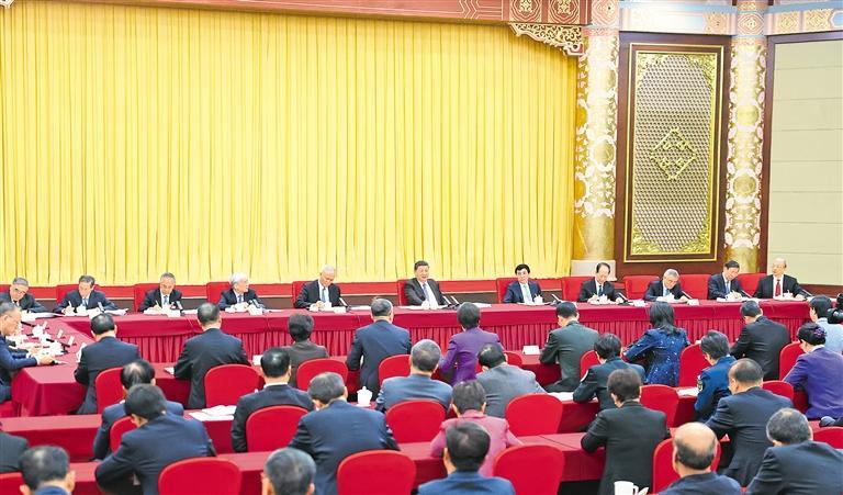 中共中央政治局常委、全国政协主席王沪宁,中共中央政治局常委、中央办公厅主任蔡奇参加看望和讨论。