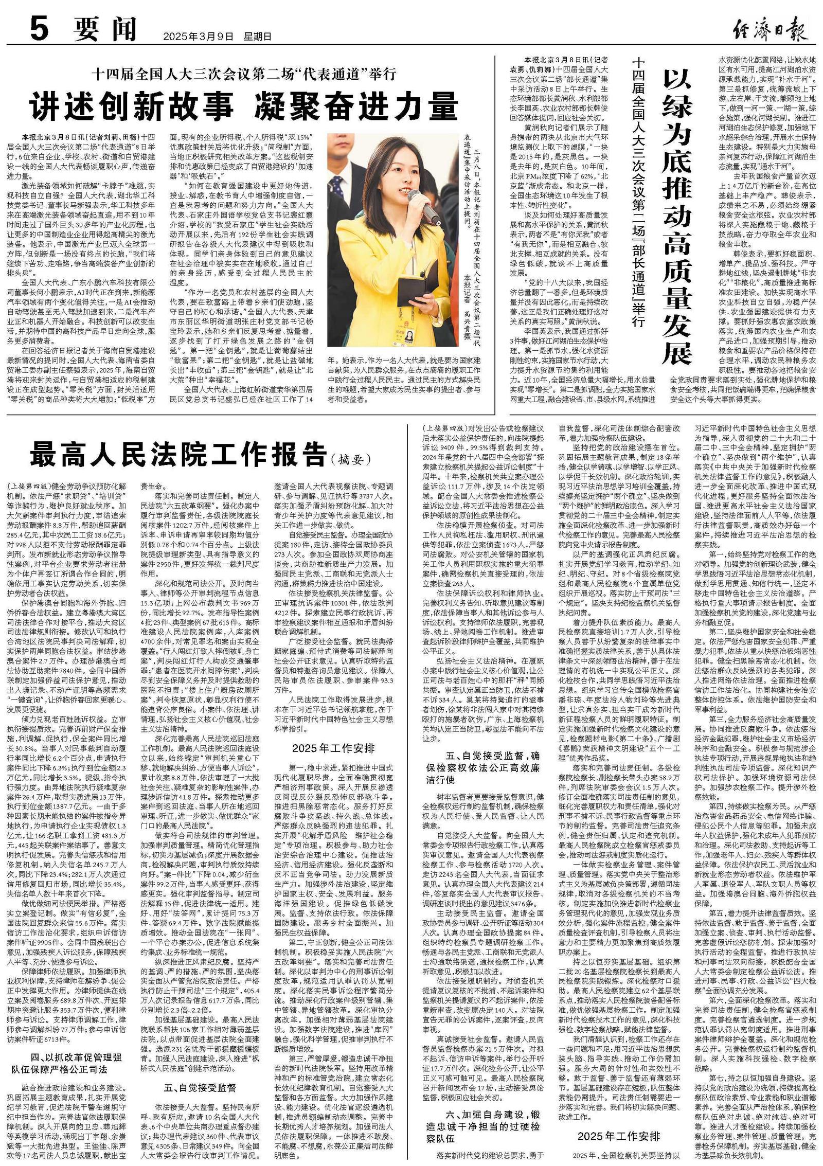 依法保障绿色发展。起诉破坏生态环境资源犯罪3.6万人,办理公益诉讼5.7万件。会同生态环境部、水利部等深入开展长江、黄河、珠江流域水环境治理公益诉讼专项监督,助力打好蓝天、碧水、净土保卫战。