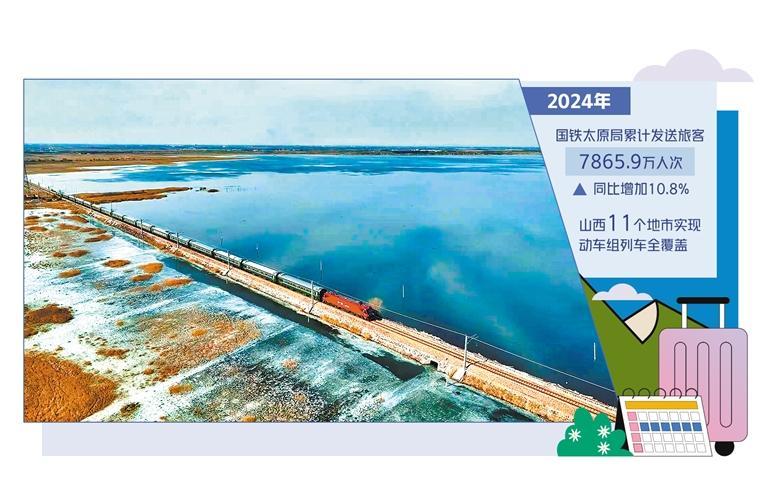 快车“慢”游,美景如画。大西高铁、石太客专、集大原高铁等将山西悠久的历史、重要的古迹串珠成链。2024年,国铁太原局累计发送旅客7865.9万人次,同比增加10.8%,山西11个地市实现动车组列车全覆盖。