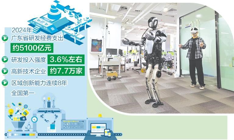科技创新是发展未来产业的核心要素。2024年广东省研发经费支出约5100亿元、研发投入强度3.6%左右,高新技术企业约7.7万家,区域创新能力连续8年全国第一,“深圳—香港—广州”科技集群创新指数连续5年居全球第二位。强大的科创实力已成为广东加快培育未来产业的信心之源。
