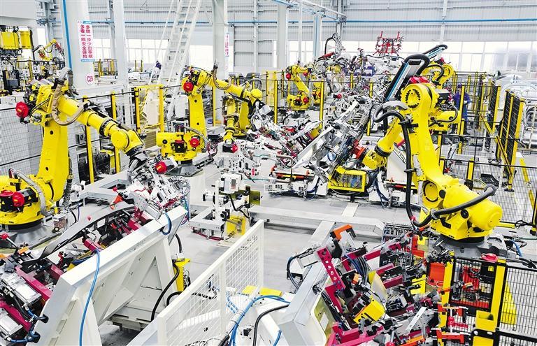 3月13日,安徽省安庆经开区安庆常庆汽车部件有限公司生产车间内,智能机械手臂正在作业。近年来,安庆经开区加快培育新质生产力,大力实施智能制造优先发展战略,推动传统制造业向智能制造转型,为区域经济高质量发展注入新动能。