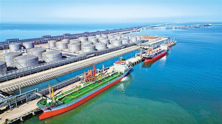3月12日,山东省东营市东营港顺鑫港务码头,货船在装卸作业。近年来,该港积极推动智能化转型,通过物联网、5G等技术打造智慧码头,生产效率提升60%,码头作业量增长40%。