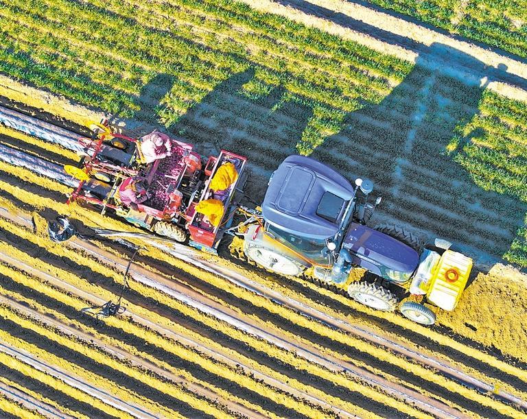 3月17日,搭载北斗导航系统的土豆播种机在河北省邢台市南和区三思镇东大村农田有序作业。近年来,当地通过“合作社+农户”模式,大力发展特色种植和订单农业,助力农业增效、农民增收。赵永辉摄(中经视觉)