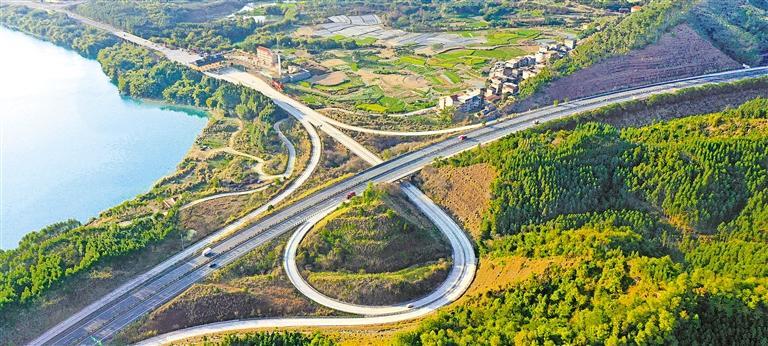 3月18日,广西融水苗族自治县融水镇水东村,高速公路与江河、民居、青山构成一幅美丽画卷。近年来,当地不断加大四好农村路建设,助力乡村振兴。