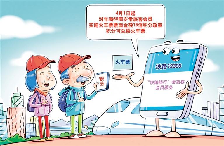 中国国家铁路集团有限公司近日发布消息称,4月1日起,国铁集团在现行“铁路畅行”常旅客会员服务基础上,对年满60周岁常旅客会员实施火车票票面金额15倍积分政策,相当于普通常旅客会员的3倍,积分可兑换火车票。近年来,铁路部门围绕购票、候车、乘车、交通接驳等出行各环节,推出了一系列适老化服务举措,初步构建起面向老年旅客的人文关怀服务体系,有力提升了铁路公共服务水平和老年旅客出行体验。同时,也进一步激发了养老消费市场潜能,为促进银发经济发展、扩大服务消费注入了新动能。下一步,铁路部门应持续提升适老化服务品质,深入落实增开银发旅游列车行动计划,推出更多适合老年人的旅行线路和服务产品,为老年旅客创造更加美好的旅行生活。(时 锋)