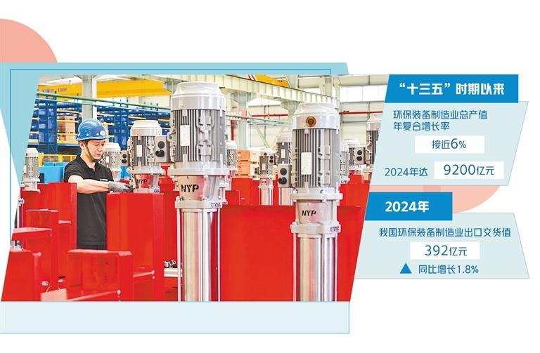 产业持续健康稳定发展。据有关行业协会测算,“十三五”时期以来,环保装备制造业总产值年复合增长率接近6%,2024年达到9200亿元。2024年我国环保装备制造业出口交货值同比增长1.8%,达到392亿元,国际影响力和竞争力不断提升。