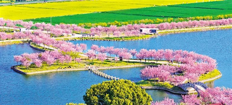 3月18日,浙江省兰溪市诸葛镇樱花园的8万多株樱花竞相绽放,吸引游客前来游玩赏花打卡。近年来,当地积极探索农文旅深度融合,建设美丽乡村。