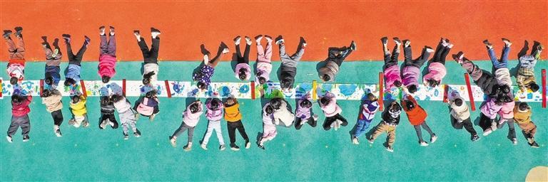 ▶在第33届“世界水日”、第38届“中国水周”来临之际,3月19日,山东省东营市广饶县广饶街道锦湖幼儿园,孩子们在老师的指导下绘制节水长卷。刘云杰摄(中经视觉)