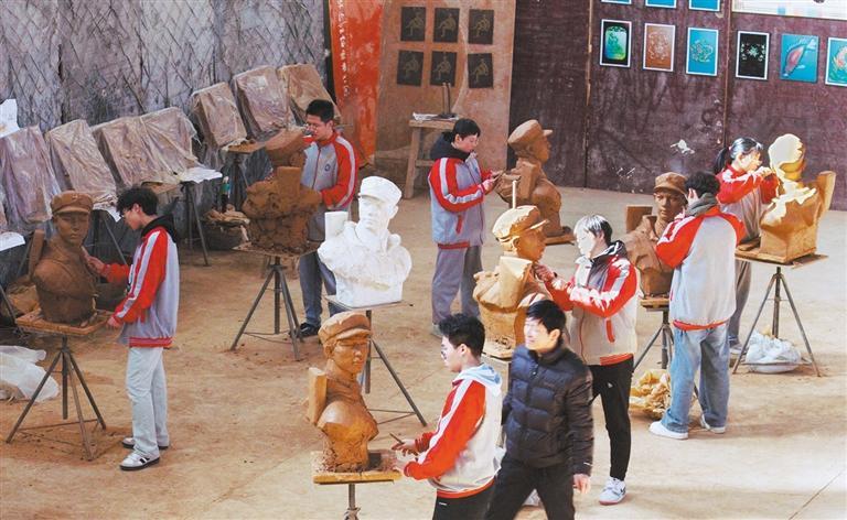 ▼2月15日,河北曲阳雕刻学校学生在上泥塑课。作为全国唯一一所以石雕为骨干专业的中等职业学校,为雕刻行业输送了5000多名专业人才。