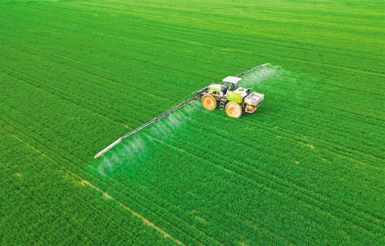 3月23日,安徽省亳州市谯城区古城镇祖寨村,农民正驾驶自走式喷杆喷雾机对小麦实施“一喷三防”作业。时下,正值当地小麦返青拔节期,农民对小麦进行杀菌防病、防虫控虫等,为高产丰收奠定基础。杨中勤摄(中经视觉)
