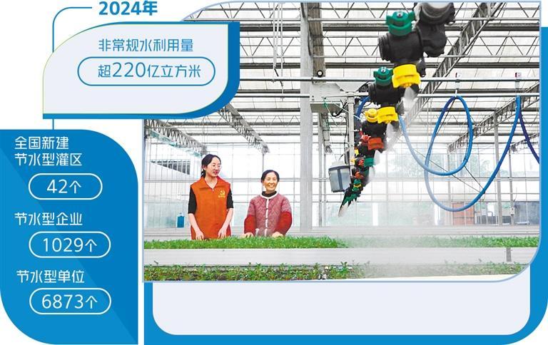 一方面,深入推动重点领域节水。2024年,全国新建42个节水型灌区、1029个节水型企业、6873个节水型单位,61个高速公路服务区建成“节水驿站”,28.2万家年用水量1万立方米及以上工业和服务业单位实现计划用水管理全覆盖。