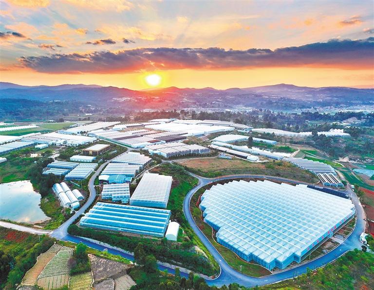 ▼俯瞰玉溪市江川区现代农业产业园区亚洲花卉科创谷(摄于2024年10月)。这里集“产、学、研、旅”于一体,已成为区域花卉产业发展的核心引擎。