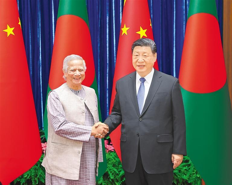 新华社北京3月28日电(记者董雪、冯歆然)3月28日上午,国家主席习近平在北京人民大会堂会见孟加拉国临时政府首席顾问尤努斯。