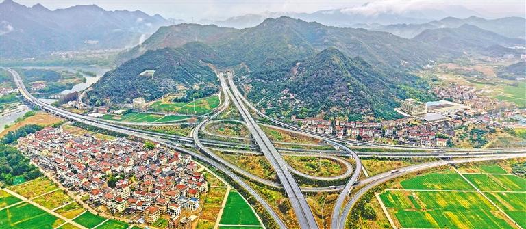 3月28日,鸟瞰浙江省临海市括苍镇,四通八达的高速公路将产业基地与村庄民居连接成一个整体。近年来,当地充分发挥交通枢纽对经济的促进作用,加大新兴产业培育力度,加快推动塑模、机械、物流等主导产业提档升级,激活乡镇发展内生动力。