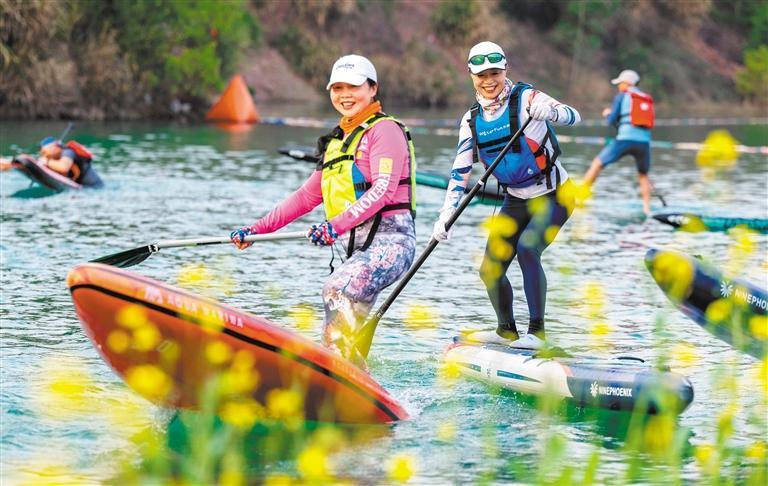 ▲3月26日,浙江湖州市长兴县架子山冬泳基地,桨板爱好者在享受运动乐趣。桨板、皮划艇等运动的兴起,不断拓展新型体育消费空间。谭云俸摄(中经视觉)