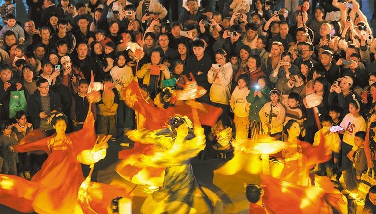 ▼3月22日,游客在安徽黄山市歙县徽州古城观看夜游表演。歙县推出“徽州府有喜”沉浸式戏剧和“博物馆奇妙夜”等夜游项目,持续激活夜经济活力。施亚磊摄(中经视觉)