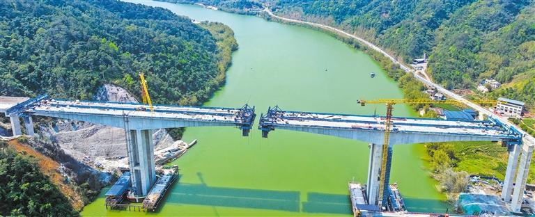 4月1日,广西苍昭高速公路桂江特大桥正在施工。该桥全长669米,是苍昭高速项目全线主要控制性工程。何华文摄(中经视觉)