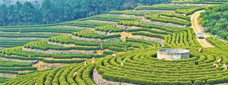 4月3日,浙江省湖州市吴兴区埭溪镇东红村,茶农在采摘明前茶。过去,东红村婆棚坞一带曾是废弃矿山。近年来,当地通过矿山综合治理,将生态修复与土地复垦相结合,因地制宜发展茶叶、油茶果等产业,昔日的废弃矿山变成了助农增收的“金山银山”。何伟卫摄(中经视觉)