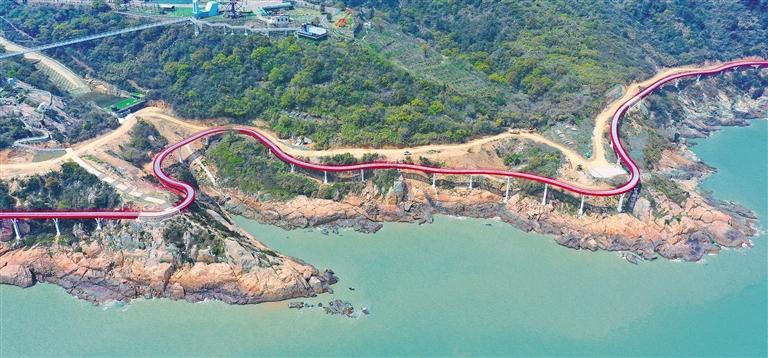 4月6日,浙江省玉环市干江镇沿海绿道建设现场,工人在施工作业。近年来,当地以民生实事项目为载体,努力提升城乡环境品质,促进城乡统筹发展。