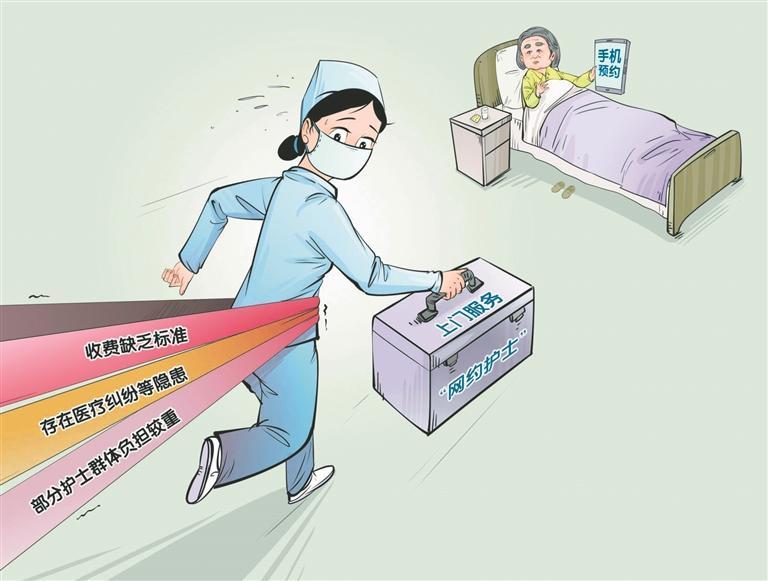 近年来,手机预约、上门服务的“网约护士”在多地出现。随着我国人口老龄化程度加深、多样化健康需求增加,居家护理服务成为失能、半失能老人和行动不便患者的刚需。不过,“网约护士”推广当前还存在一些现实困难。如收费缺乏标准,存在医疗纠纷等隐患,部分护士群体负担较重等。推动“网约护士”叫好又叫座,需逐步解决这些不足和隐患。可以尝试将上门护理纳入医养结合工作,促进养中有医;医疗机构与养老机构合作联动,形成高效协作的上门服务团队,提升服务质量。有关部门需进一步明确收费标准,探索将上门护理服务费用纳入医保,降低患者的经济负担。此外,还可以采取技术手段提升安全性,减少不必要的纠纷。(时 锋)