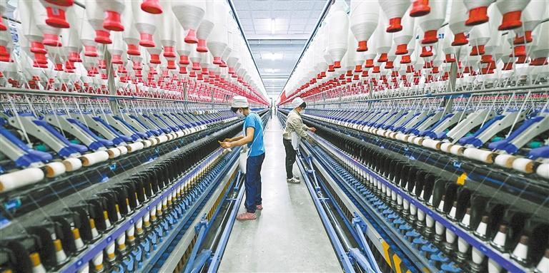 4月7日,在四川眉山仁寿县金鹅纺织有限公司生产车间,工人正在生产线上紧张工作。近年来,当地积极落实各项惠企政策,持续加大帮扶力度,助力企业加速创新、扩大生产。