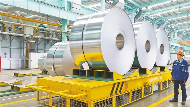 安徽省淮北市高新技术产业开发区,一家新能源用再生低碳铝热传输材料生产企业车间内,工人们正在赶制订单产品。