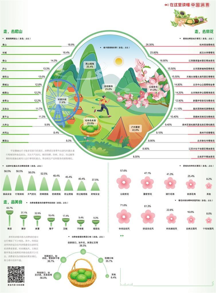 春风拂过,大地不断焕发生机的同时,消费市场也迎来新变化。生机盎然的春景加上适宜的气温,让赏花踏青、爬山锻炼等活动成为年轻人追求春日仪式感的热门选择。人们出行愿望增强、多元消费场景融合焕新,春日经济不断释放新活力。