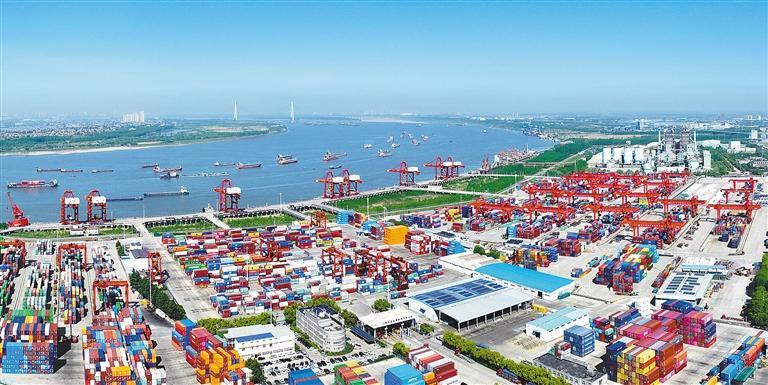 4月15日,武汉阳逻国际深水港一派繁忙景象。作为长江中上游最大的集装箱码头、武汉联通长江经济带与“一带一路”的重要枢纽、国家一类开放口岸,阳逻港已经开通各类集装箱航线35条,多式联运通道42条。海关数据显示,今年一季度,武汉阳逻港直航进出境货物7.99万吨,同比增长189.1%,创历史同期新高。