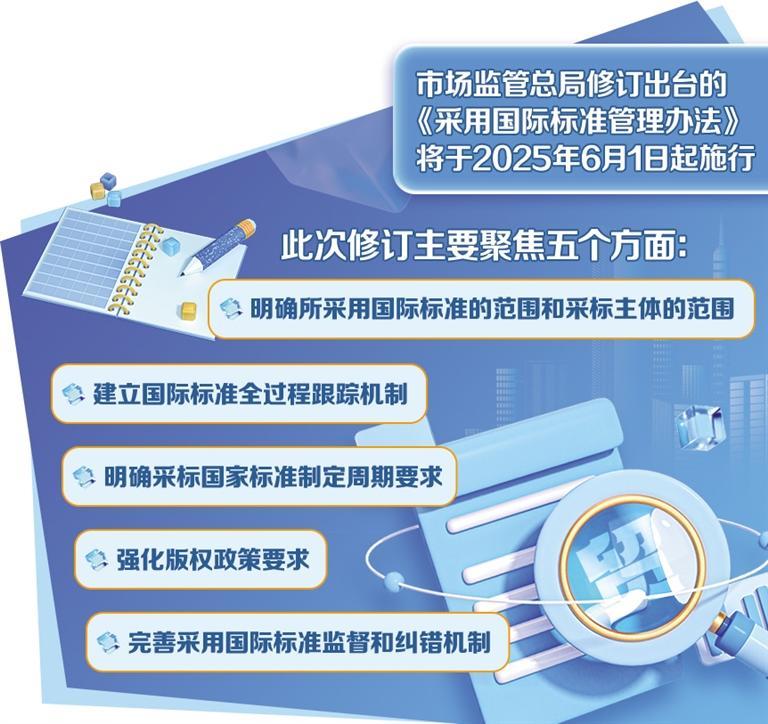 日前,市场监管总局修订出台《采用国际标准管理办法》(以下简称《办法》),将于2025年6月1日起施行。