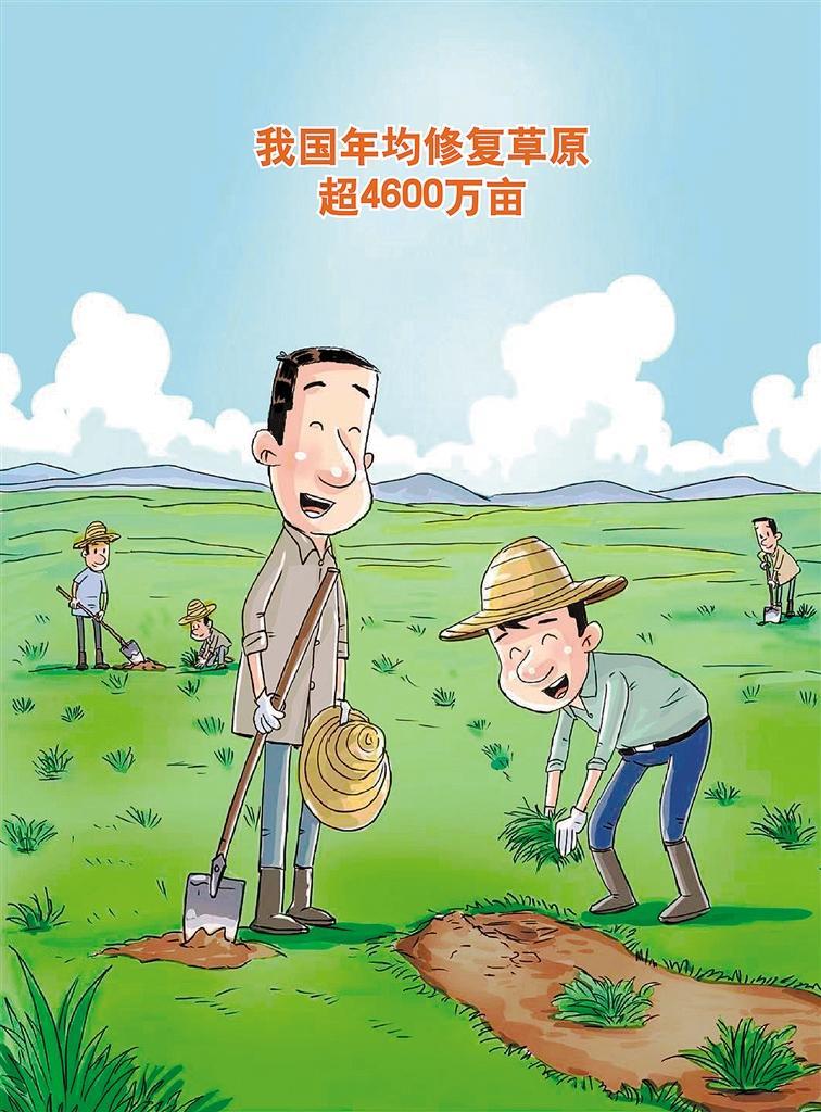 国家林草局近日发布数据显示,“十四五”以来,中央财政支持草原保护修复总投资达到1100亿元,年均修复草原超过4600万亩。近年来,国家林草局以组织实施“双重”“三北”等工程为抓手,持续推进草原修复治理,草原增绿扩绿取得显著成效。与此同时,积极创新草原保护利用新模式,发挥新型经营主体作用,挖掘草原生态旅游、自然教育、草原特色生态产业发展潜力,探索建立绿水青山转化为金山银山的实践途径。接下来,应持续加大草原保护修复力度,更加注重“提质”“兴业”“利民”,更好统筹草原生态、生产、生活的关系,建设完备的草原资源保护体系和发达的草业产业体系,进一步提升草原治理体系和治理能力现代化水平,为建设人与自然和谐共生的现代化提供有力支撑。(时 锋)