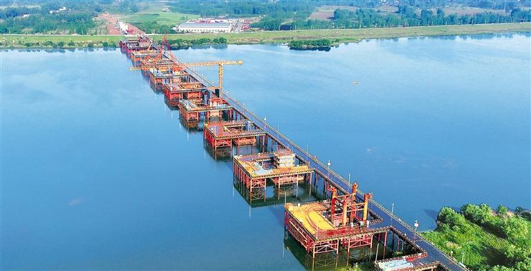 4月23日,安徽省六安市金安区合武高铁六安淠河特大桥施工现场,工人在进行桥墩桩基施工。合武高铁项目建成后,将进一步优化长江经济带铁路网布局,便利沿线群众出行,更好服务区域协调发展。