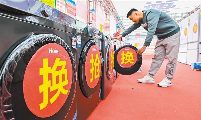 ▲3月23日,消费者在山东青州市举办的“家电以旧换新进社区”活动中选购洗衣机。
