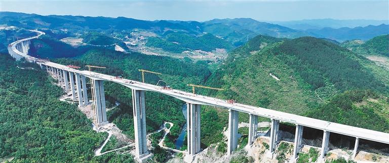 4月28日,位于贵阳市乌当区的贵(阳)平(塘)高速公路南明河特大桥主桥实现合龙。该大桥全长1129.8米,为连续刚构T梁桥,最大主跨180米,最大墩高175米,是贵平高速公路的重点控制性工程之一。