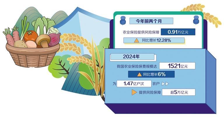 近年来,保险机构聚焦乡村全面振兴重点领域,完善专业化体制机制建设,创新产品服务,为推进乡村全面振兴提供有力的金融支撑。国家金融监督管理总局办公厅近日发布《关于扎实做好2025年“三农”金融工作的通知》,提出要加力提升涉农保险保障水平,推动涉农财产险扩面增品,改善涉农保险服务。数据显示,今年前两个月,农业保险提供风险保障0.91万亿元,同比增长12.28%。