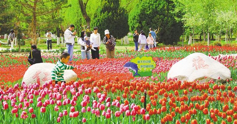 五月五日,甘肃省嘉峪关市东湖生态旅游景区的郁金香迎来盛花期,吸引众多市民游客赏花、游玩,乐享“五一”假期。马玉福摄(中经视觉)
