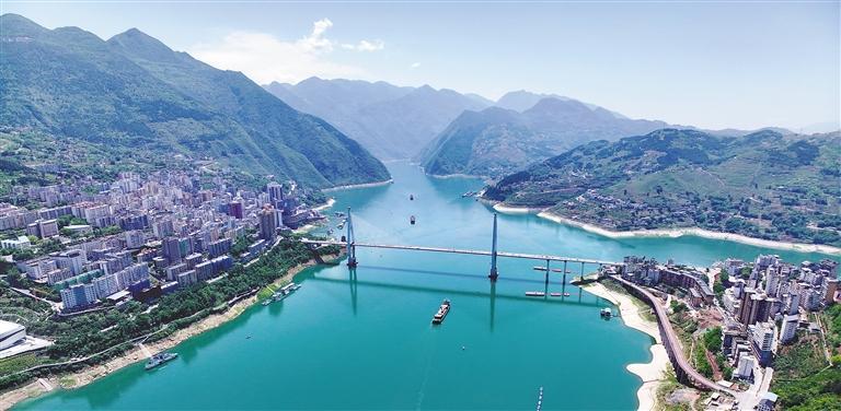 5月5日,三峡库区湖北省恩施土家族苗族自治州巴东县,两岸青山连绵起伏,长江生态廊道与江面船舶构成一幅美丽画卷。近年来,巴东县全力推进岸线复绿等工程,群众获得感不断提升。焦国斌摄(中经视觉)
