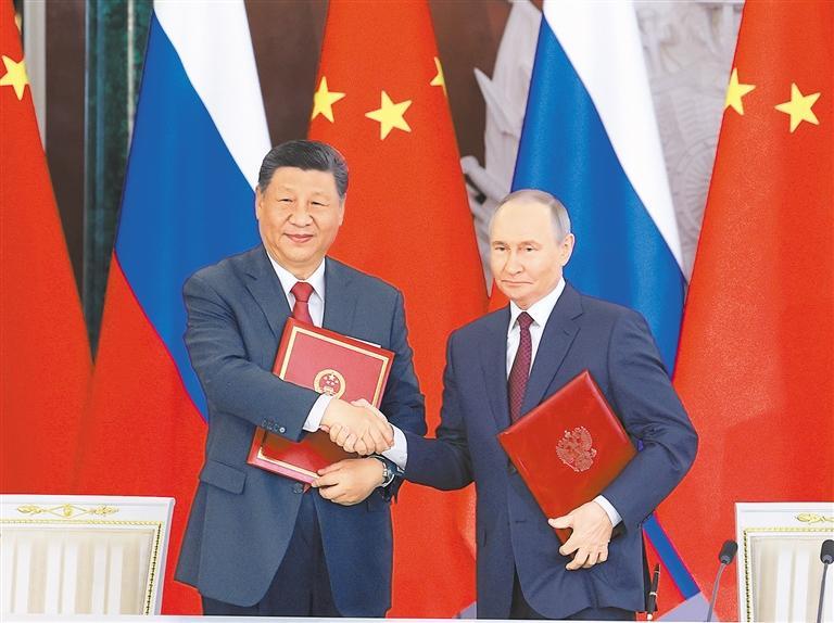 两国元首共同见证中俄双方交换20多份双边合作文本,涵盖全球战略稳定、维护国际法权威、生物安全、投资保护、数字经济、检疫、电影合作等领域。