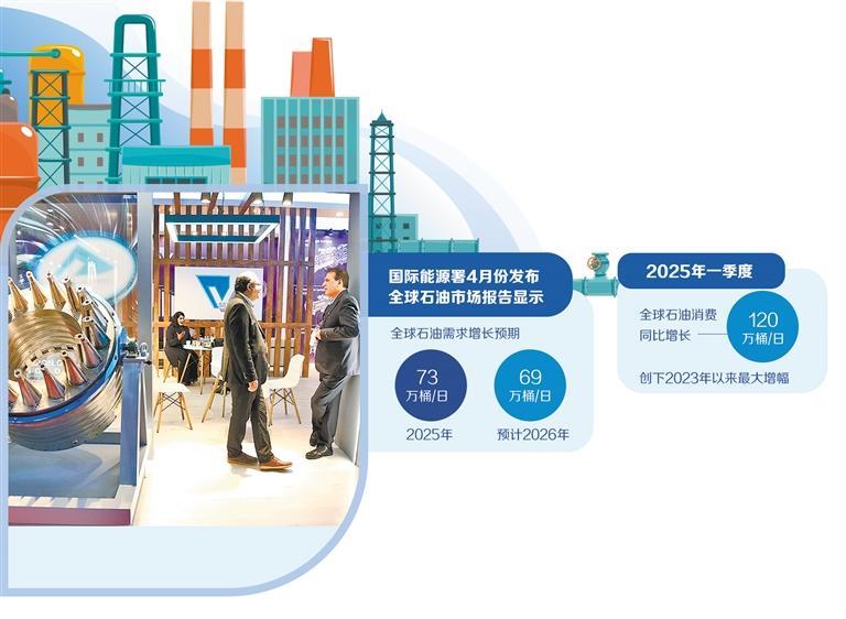 报告显示,2025年一季度,全球石油消费同比增长120万桶/日,创下2023年以来的最大增幅。3月份全球石油供应环比增长59万桶/日,达到1.036亿桶/日,其中由石油输出国组织(欧佩克)成员国和非欧佩克产油国组成的“欧佩克+”以外的产油国主导了月度石油供应增量。国际能源署最新预计,2025年全球石油产量增长约为120万桶/日,较此前预期下调了26万桶/日,预计2026年全球石油产量增长为96万桶/日,主要来自近海油田产量增加。