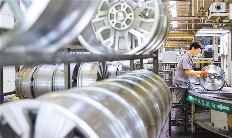 河南省三门峡戴卡轮毂制造有限公司车间内,工人加紧赶制订单。该公司加大轮毂市场开拓力度,积极对接海外客户资源,推动外贸稳量提质。孙 猛摄(中经视觉)