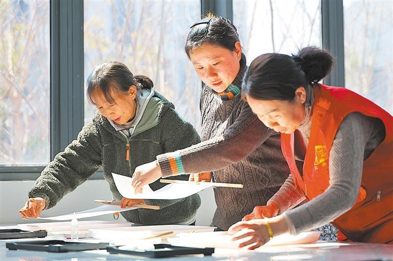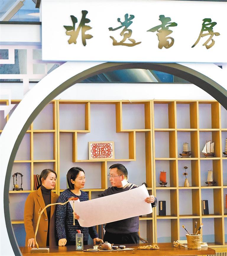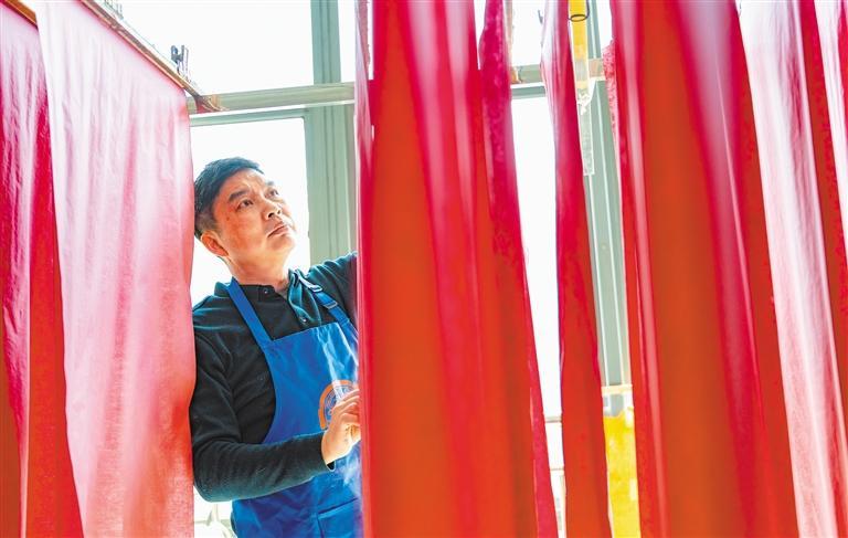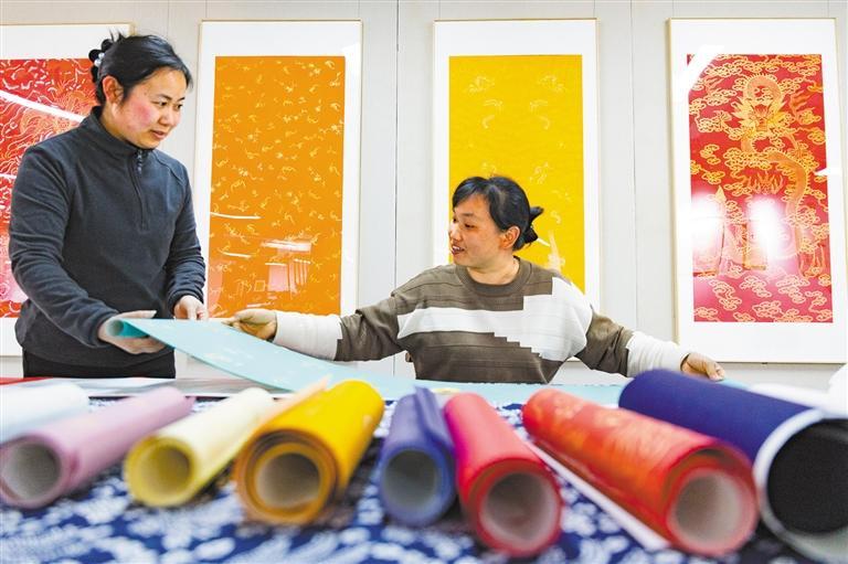 走进位于安徽省巢湖市黄麓镇的掇英轩艺术馆,一卷卷色泽明艳、表面如缎、金粉熠熠的纸笺映入眼帘。这些经过特殊设计与加工的纸张,不仅承载着深厚的文化内涵,更体现着工匠的高超技艺和非凡匠心。艺术馆创办人、纸笺加工技艺国家级非物质文化遗产代表性传承人刘靖介绍,纸笺制作工序非常繁琐,包括拖染、涂刷、托裱、洒溅、描绘等几十种手工技艺。纸笺品种繁多,不同的纸笺需采用不同的加工技艺,通过多种技艺的相互交叉融合,又可以衍生出新的纸笺产品。